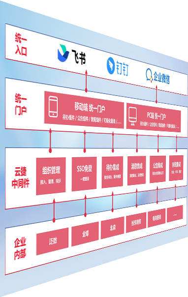 对协作平台提供支持服务,,支持企业应用与协作平台对接,,,,包含组织同步、、、、消息集成、、、、待办集成等。。。支持目前主流的协作平台:钉钉、、企微和飞书。。。。